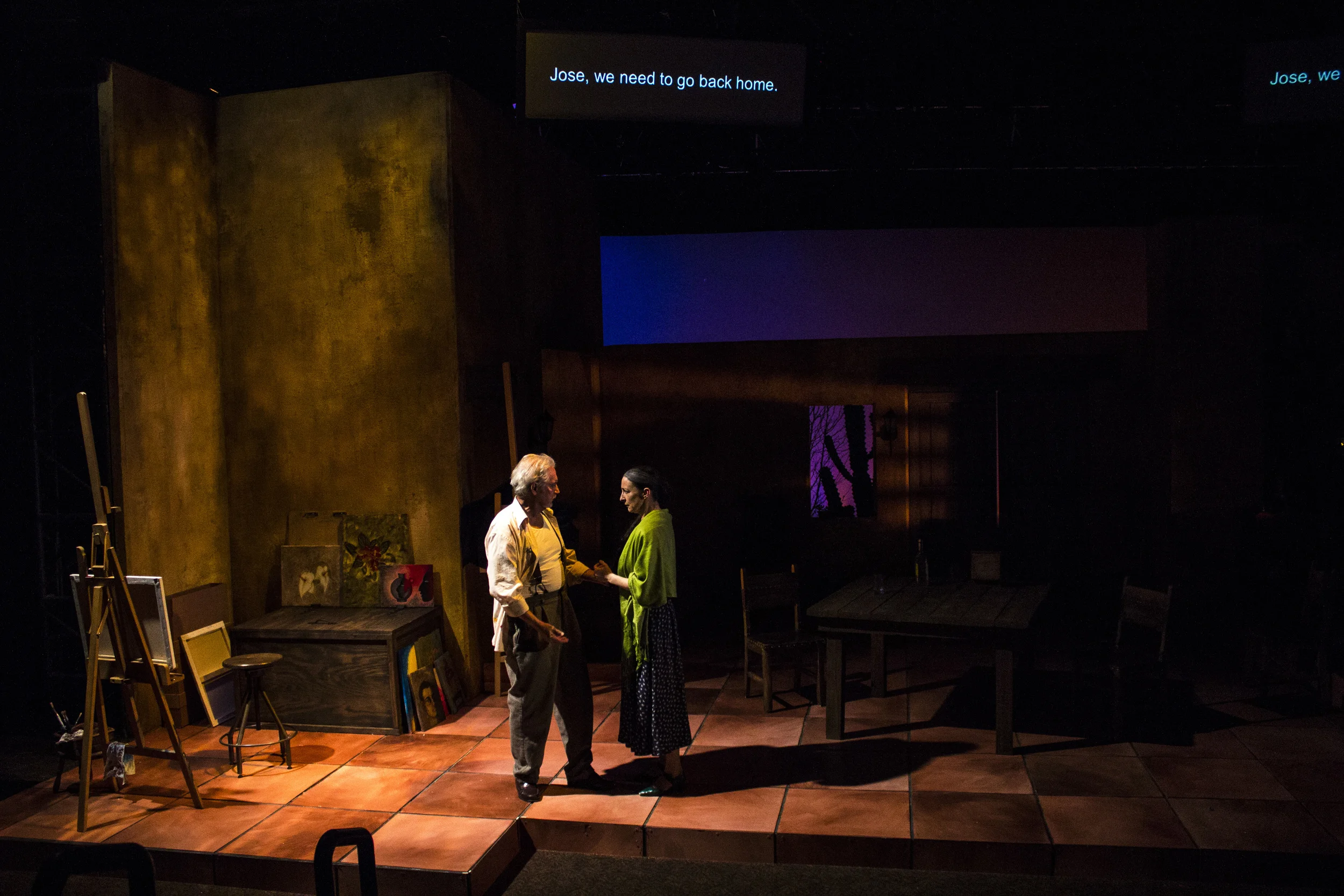 “Christopher Annas-Lee’s lighting design, which ghosts the 1950s-set sequences with gray shadows and flushes the further past with brightness and brilliant colors, helps both to delineate the flashbacks and to evoke the desert beauty that has proved so bewitching to Mariela and José. “The desert is God’s canvas,” José is fond of saying, but the sounds of blowing wind, barely audible throughout most of the play, drive home the incompleteness of this aphorism.”
